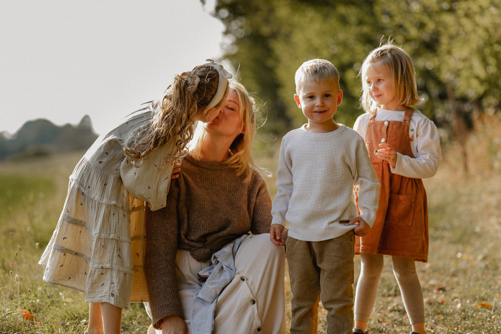 Kinder wollen spielen und die Welt entdecken. Sie schauen nicht gerne in die Kamera und lachen künstlich. Bei mir läuft das Familienshooting etwas anders. Ich möchte, dass sie einfach so sind, wie sie sich in dem Moment fühlen. Wenn sie gerade einen Regenwurm beobachten, Steine sammeln oder sich mit dem kleinen Bruder streiten wollen, ist das völlig in Ordnung! So zeigt ihr, wie ihr als Familie wirklich seid, und genau das werden die schönsten Bilder von euch sein. Wenn die Geschwister sich in 10 Jahren die Fotos anschauen, werden sie die Liebe zueinander spüren, als wäre es erst gestern gewesen.